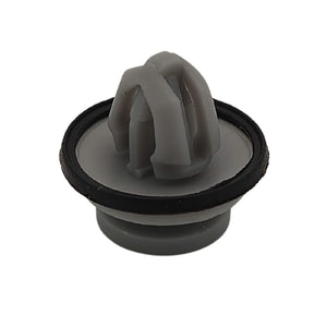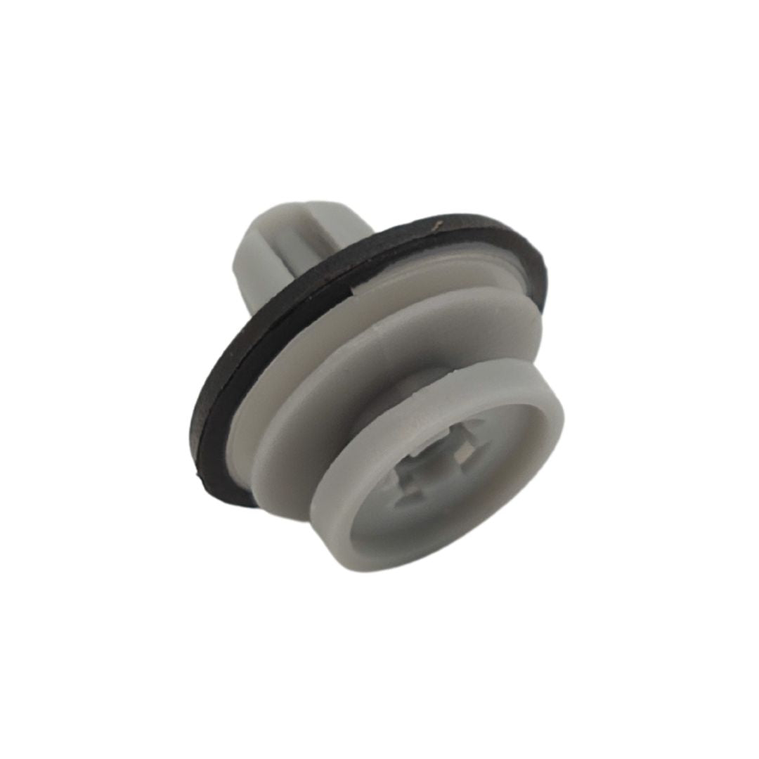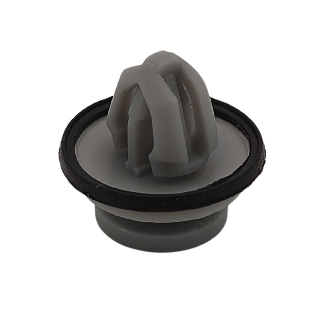 These grey plastic trim clips are designed for securing exterior components like lower door mouldings and wheel arch flares. Commonly used across various Land Rover models, including the new Defender, each clip features an integrated rubber seal for a secure fit.