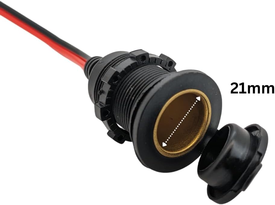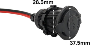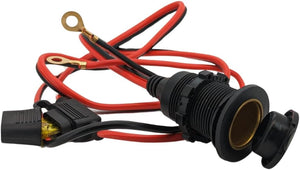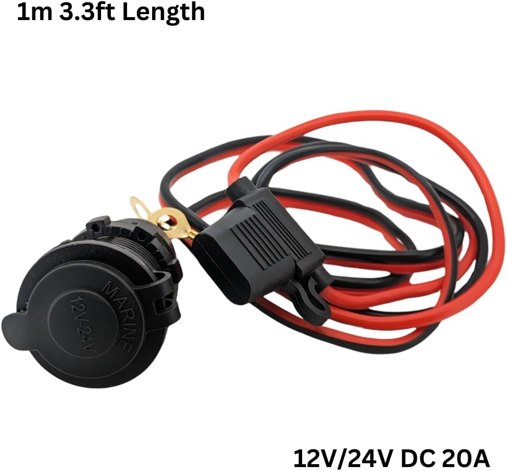 12V/24V DC 20A Fixed Cigarette Lighter Socket with Cable, Ring Eyelet Terminals & In-Line Blade Fuse - Waterproof Marine Grade Direct Battery Type 14AWG 2.5mm² Cable High Power Heavy Duty
