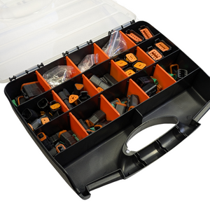 This 320-piece automotive electrical connector set is designed for the Deutsch DT Series, ensuring a reliable and durable connection for various automotive applications. The set includes 34 male and female connector sets, complete with corresponding pins, inserts, and seals, providing a comprehensive solution for your electrical connection needs. It features an assortment of 2, 3, 4, 6, 8, and 12 pin/way connector kits, catering to a wide range of configurations and requirements. Whether you're working on repairs, maintenance, or custom projects, this connector set offers versatility and quality for your automotive electrical needs.
