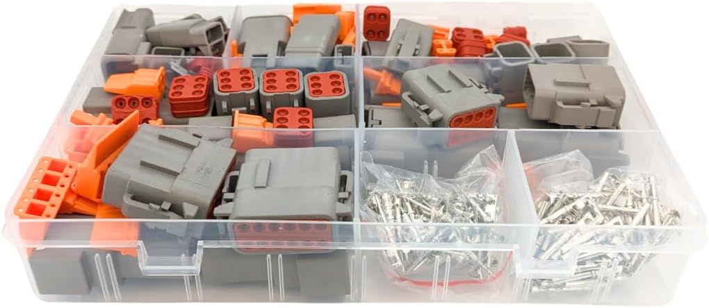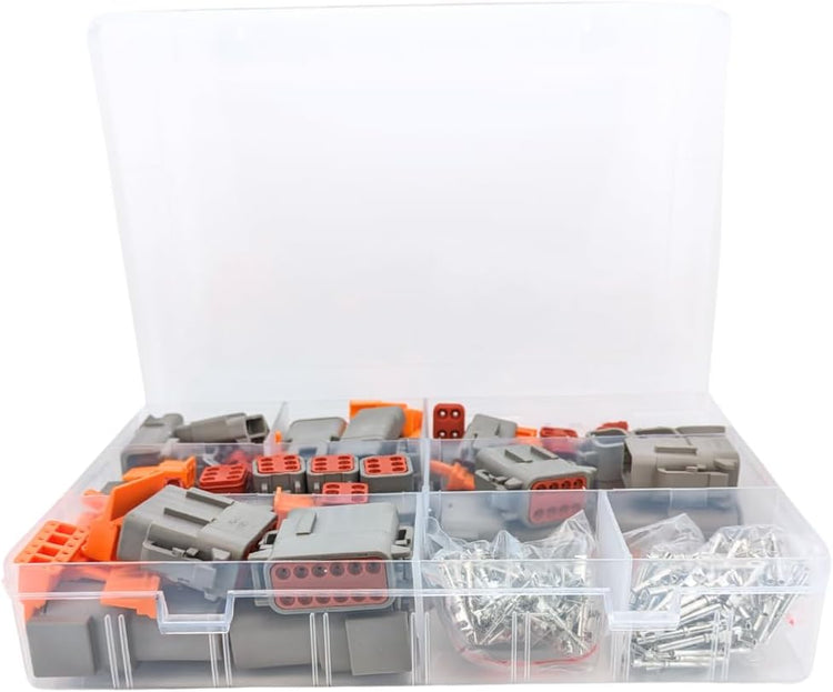 32pcs Deutsch DTM Connector Assortment Box - Male & Female Connector Sets with Pins & Inserts | 12, 8, 6, 4, 3 & 2 Pin | Waterproof Sealed Automotive Plugs Kit with Box