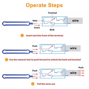 Effortless & Damage-Free Extraction: No need for prying—simply push and pull the terminal pins for easy removal. This tool allows you to extract terminals from wire harness connectors and insert new wires without damaging the existing harness, preserving the original factory condition.