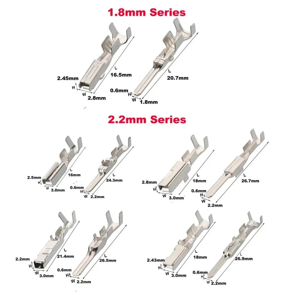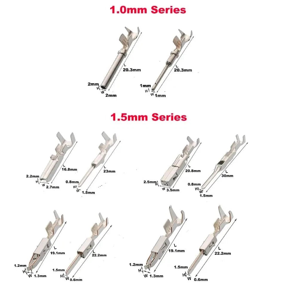 What’s Included: Assorted terminal pins in 1mm, 1.5mm, 1.8mm, 2.2mm, 2.8mm and 3.5mm sizes (260pcs total), 240pcs connector wire seals, and a removal tool kit, all neatly organised in one box.