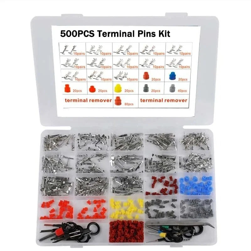 500pcs Car Connector Pins Kit 1-3.5mm Male Female Terminals Seals & Removal Tool