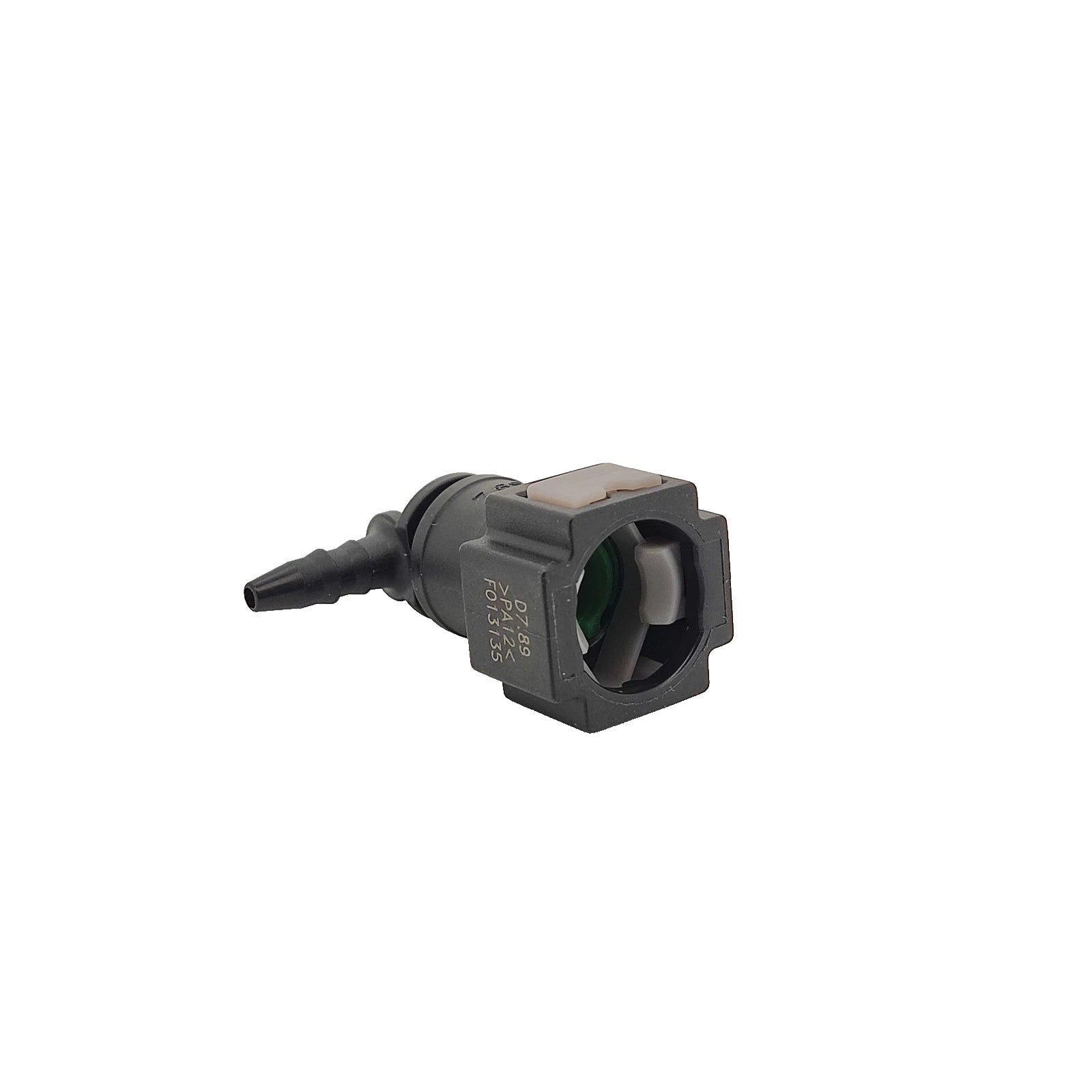 This high-quality 90-degree elbow fuel line connector provides a reliable link between a 7.89mm quick connector and a 3mm ID fuel hose. Designed for durability and ease of use, it ensures a secure fit for splicing, teeing off, or connecting return and non-pressurised fuel lines.