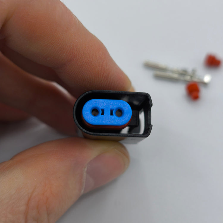 Replacement 2 pin ABS / wheel speed sensor connector plug designed to restore a secure and reliable electrical connection. Ideal for wiring repairs where the original plug is damaged, loose, or has broken locking tabs.