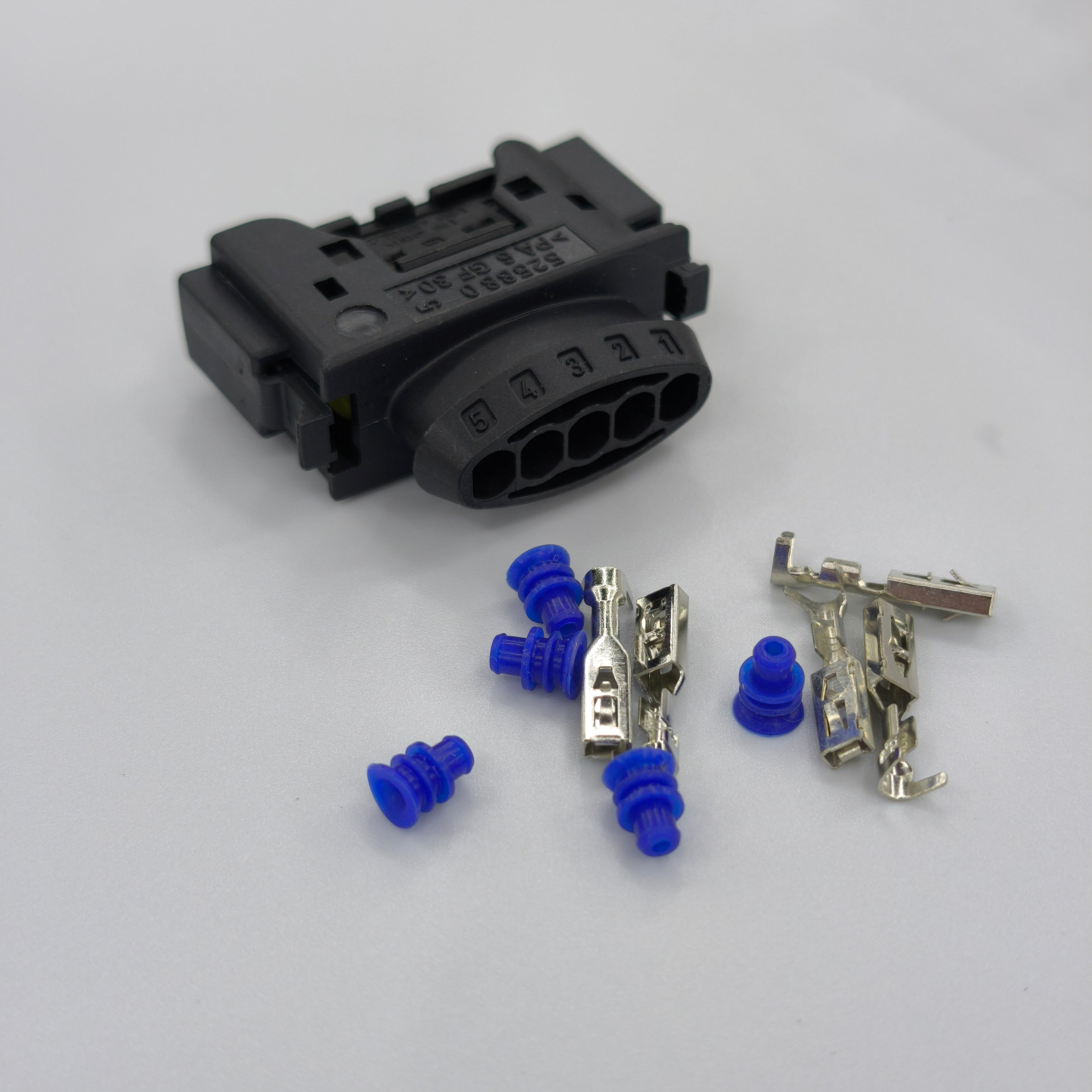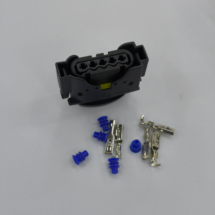 Replacement 5 pin air flow meter (MAF) sensor connector plug designed to restore a secure and reliable electrical connection. Ideal for repairs where the original connector is damaged, loose, or has broken locking tabs.