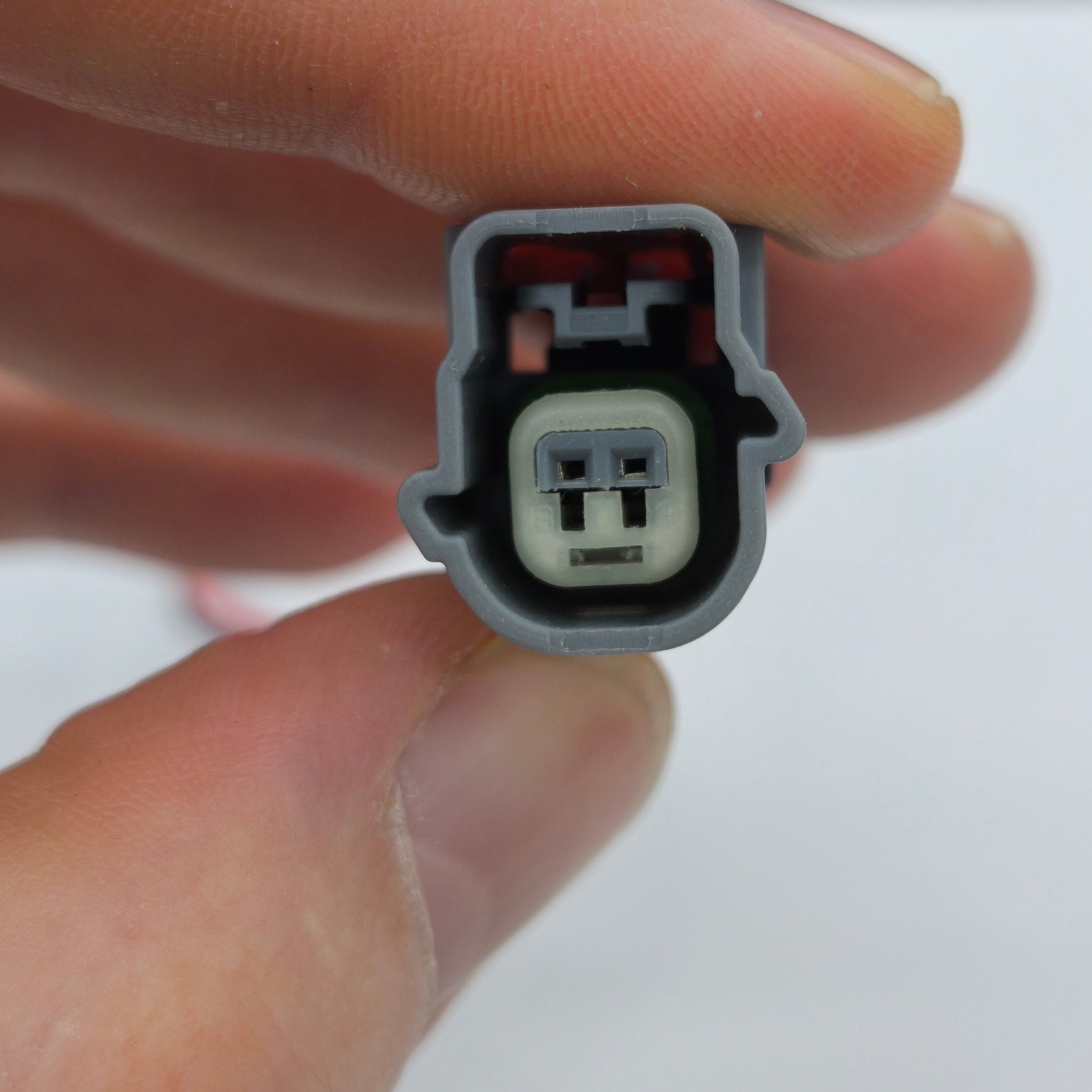 Replacement PREWIRED 2 pin front impact crash sensor connector plug designed to restore a secure and reliable electrical connection when the original plug is damaged, loose, or has broken locking tabs. Ideal for wiring repairs and loom replacement jobs.
