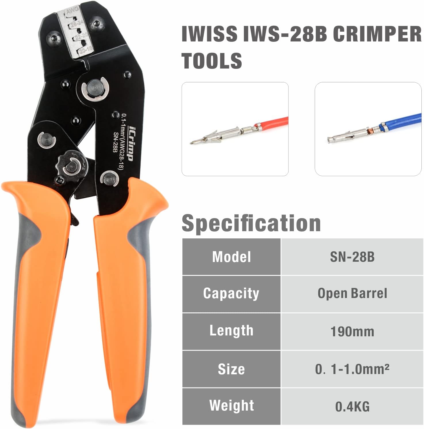 iCrimp Crimping Tools for Dupont Pin, Molex JST Micro-Fit connectors Compression 0.1-1mm² with Wire-Electrode Cutting Die