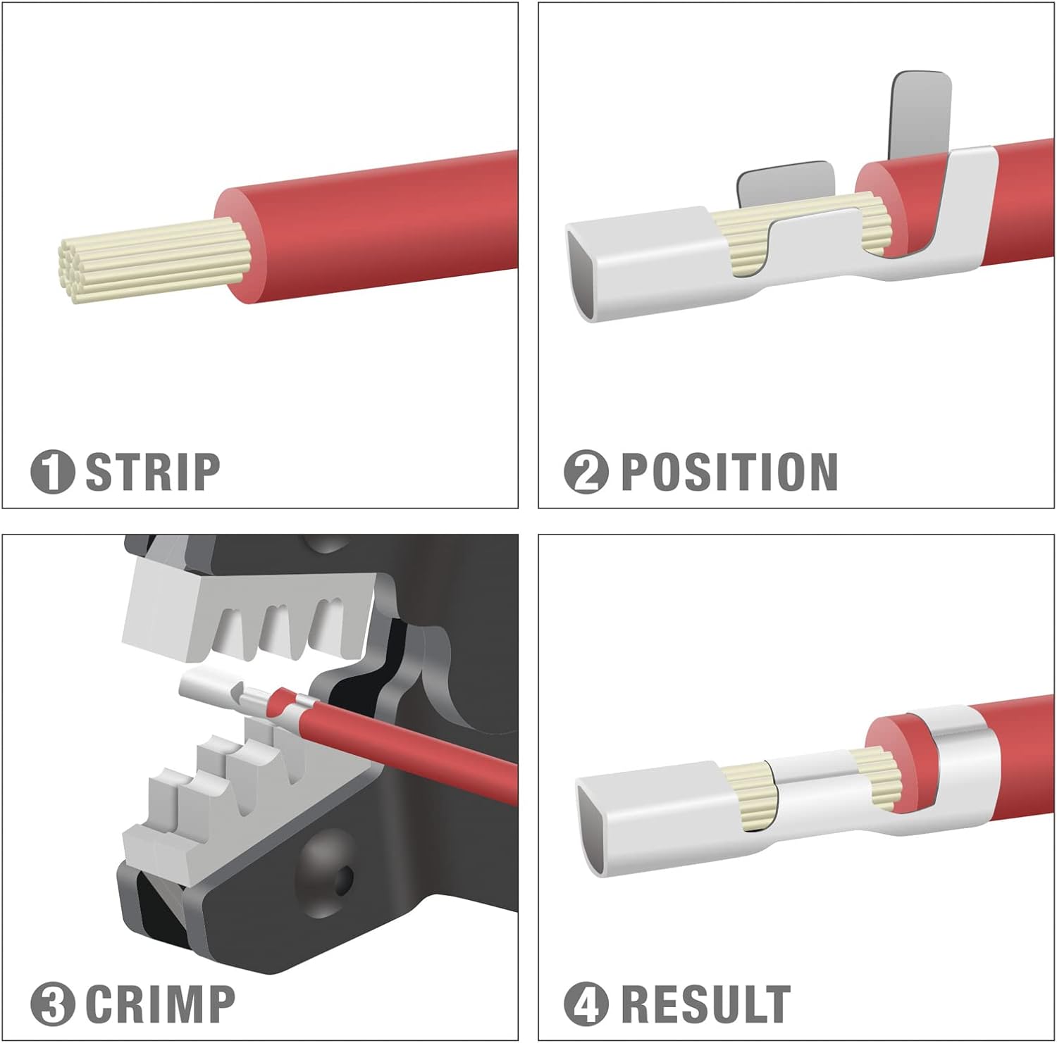 Supports wire sizes from 0.1 to 1.0 mm² (AWG 28–18). Compatible with 2.5mm, 2.54mm, and 3.96mm pitch terminals—commonly used with JST VH, XH, NH pins, and Dupont 2.54mm connectors.