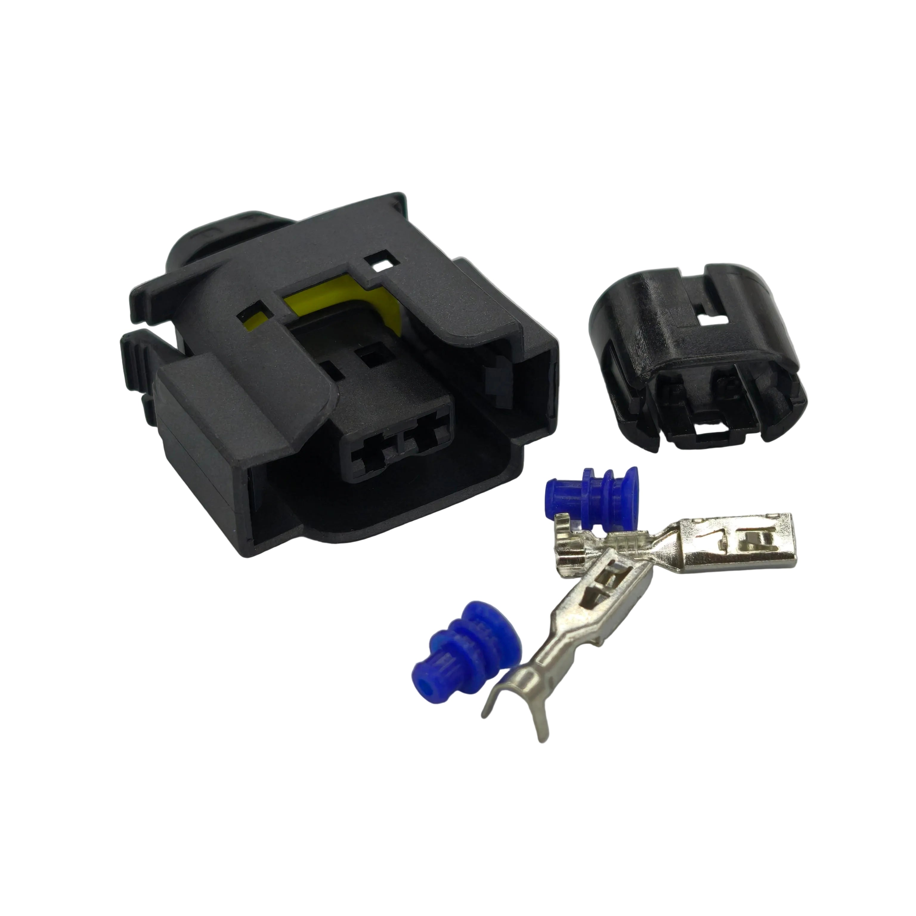 Replacement 2 pin automotive electrical connector plug designed for ignition coil / generator wiring applications (depending on vehicle setup). Ideal for replacing damaged connectors and restoring a secure, reliable electrical connection.