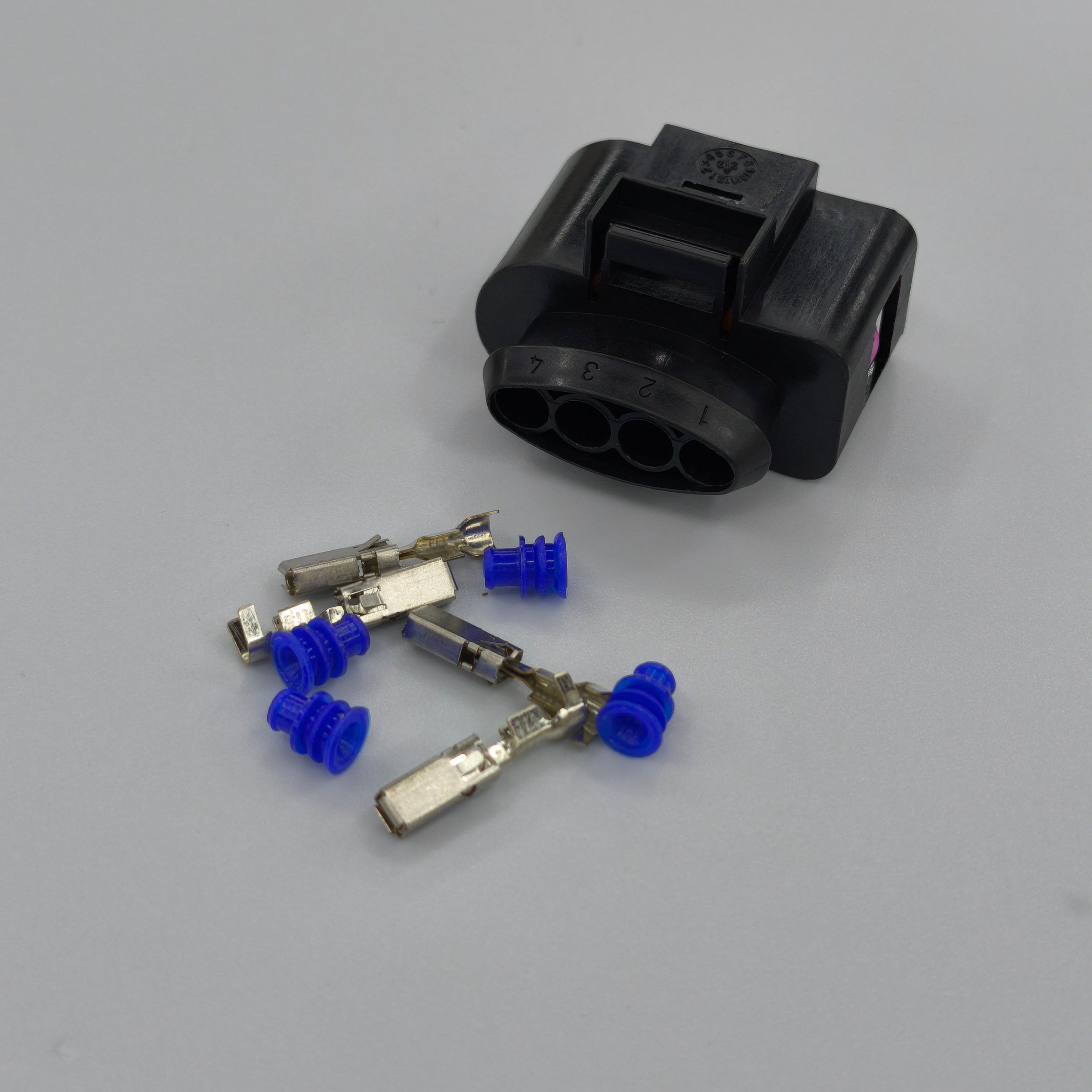 Replacement 4 pin female ignition coil connector plug designed to restore a secure and reliable electrical connection. Ideal for wiring repairs where the original ignition coil plug is damaged, loose, or has broken locking tabs.