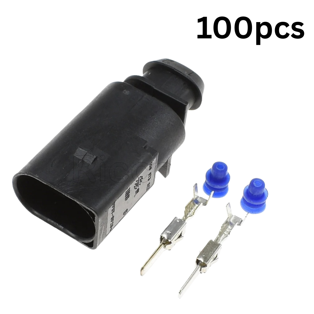 Secure a massive value deal with this pack of 100 high-quality automotive wiring harness connectors, specifically designed as direct replacements for OEM part numbers 8D0973822, 8D0 973 822, and 1717692-1. Commonly used across various VAG group vehicles (VW, Audi, Skoda, SEAT), these 2-pin connectors are perfect for horns, sensors, and other electrical components.