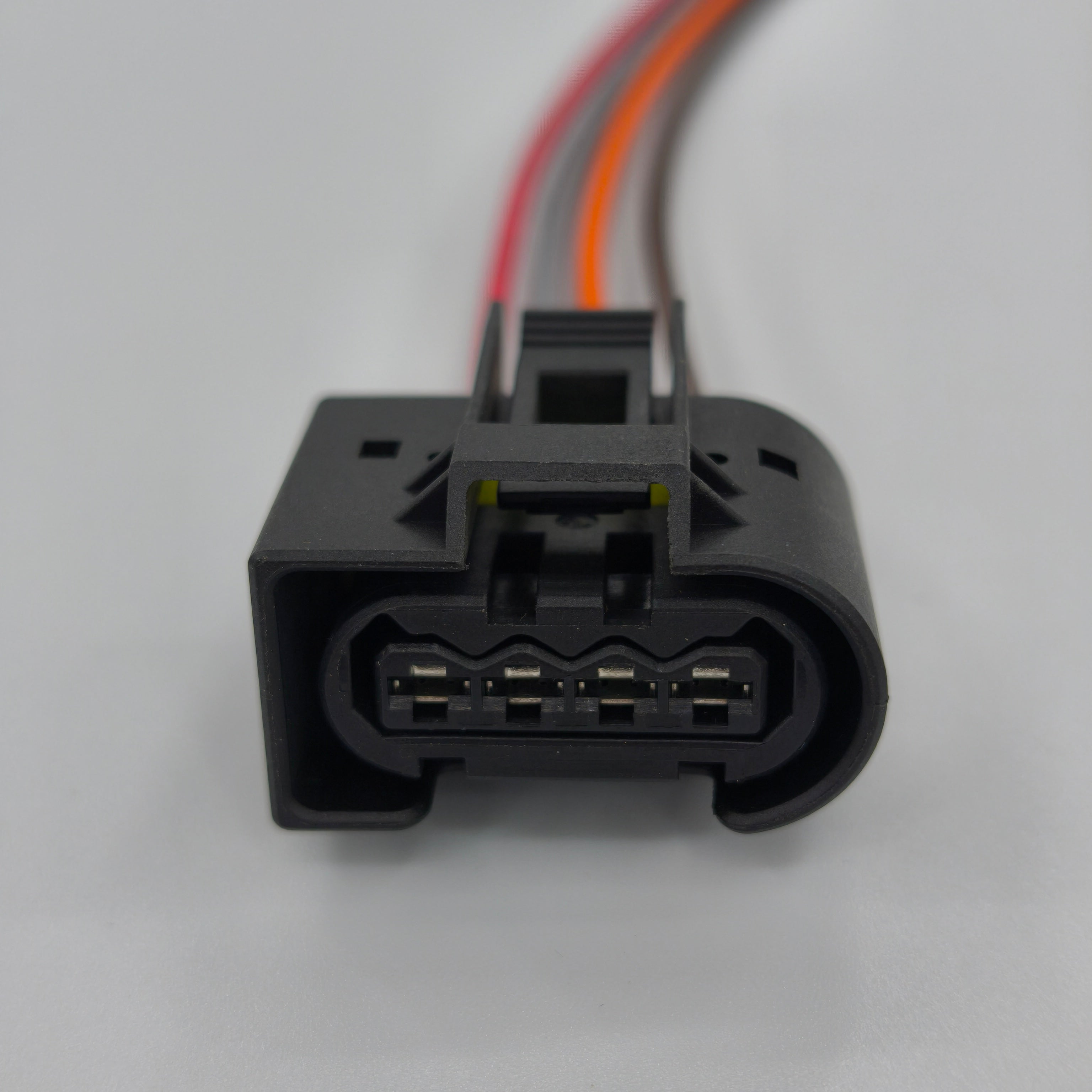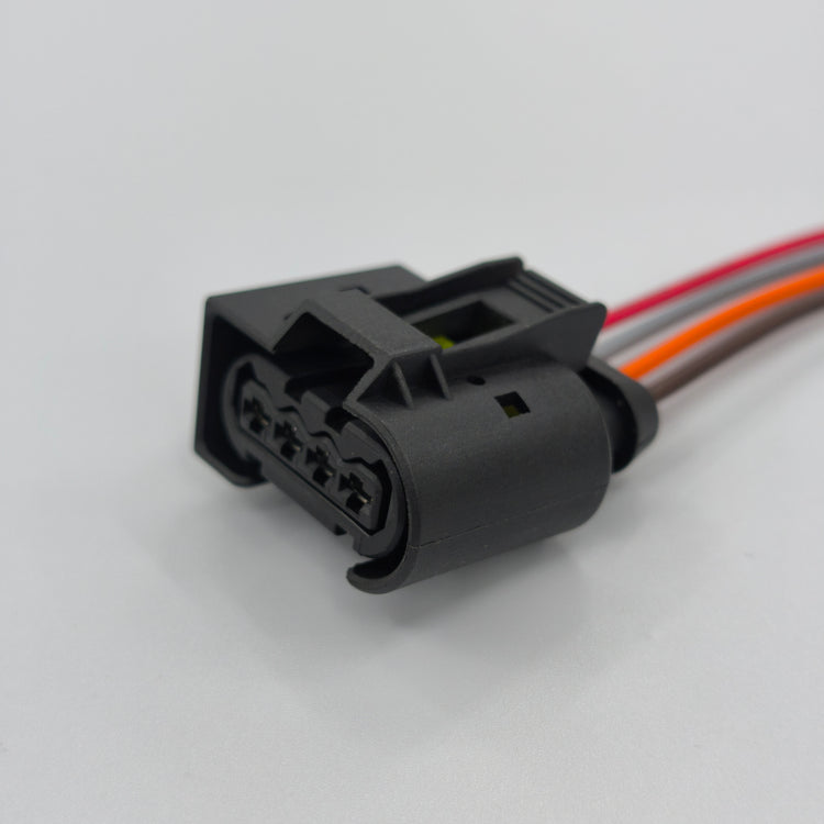 Replacement PREWIRED 4 way waterproof connector with a female housing design, ideal for restoring a secure and reliable electrical connection on compatible automotive wiring harness applications.
